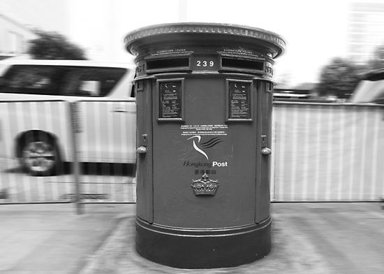 標有皇冠標志的香港老郵筒。