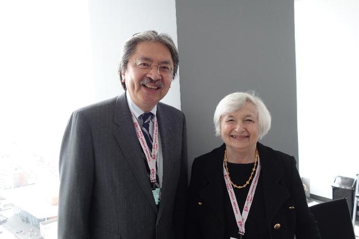 曾俊華與耶倫(右)會面。(政府新聞處圖片)