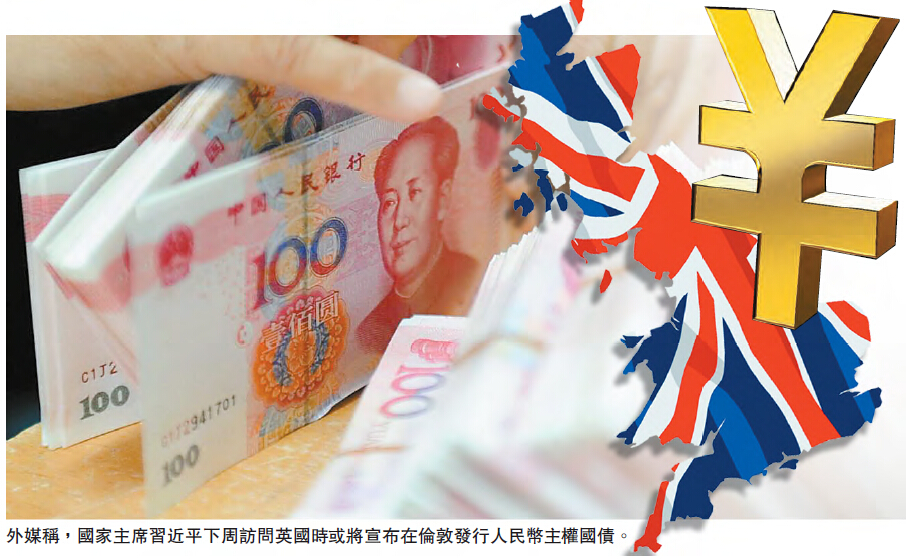 國家主席習近平將於本月19日至23日對英國進行國事訪問。據介紹,習近平和夫人彭麗媛將下榻白金漢宮并出席由女王夫婦主持的國宴。英國《金融時報》昨日報道稱,習近平在訪問英國時或將宣布在倫敦發行人民幣主權國債。