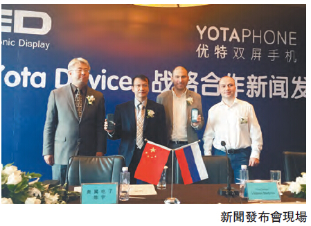 【香港商報网訊】記者徐紅報道:日前,在哈爾濱舉行的第二屆中國-俄羅斯博覽會上,優特雙屏智能手機YotaPhone的開發商Yota Devices宣布與廣州奧翼電子科技有限公司建立合作關系,聯合開發新產品。根據協議,優特公司將在下一代YotaPhone3中,采用中國奧翼生產的「電子紙顯示屏」,擬明年亮相內地市場。近日,雙方在廣州聯合召開新聞發布會,宣布了合作事宜。