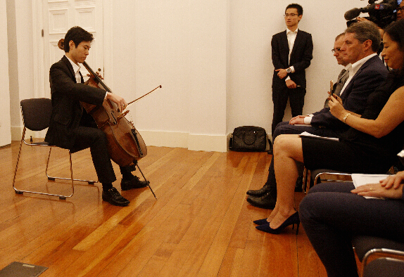 來自上海音樂學院的演奏家現場演奏大提琴展品。