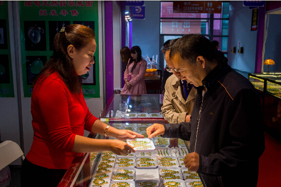 顧客在第五屆昆明國際珠寶展上挑選商品。