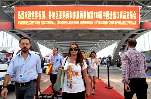 10月15日,客商在廣交會展館參觀。新華社記者 盧漢欣 攝