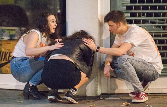 圖為在布里斯托爾,一名女子在嘔吐。