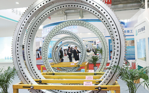 觀眾在參觀展出的2.0MW偏航軸承
