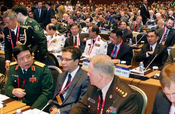盡管只有寥寥數語,拉夫黑德的言論還是讓與會者敏感地嗅到了一絲“火藥味”。在接下來的互動環節中,軍事科學院中美防務研究中心主任姚云竹少將就“如何界定南海地區軍事化這一概念”向拉夫黑德提問,并連續問道:“在該地區軍演是否算軍事化?派駐軍艦駐守南海是否算軍事化?”