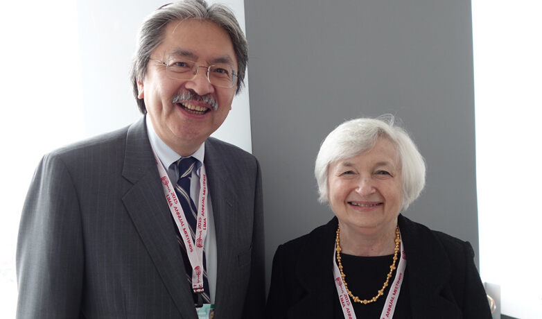 曾俊華(左)表示,與美聯儲主席耶倫(右)一席話,使他對目前美國經濟和貨幣政策有更深入的理解。