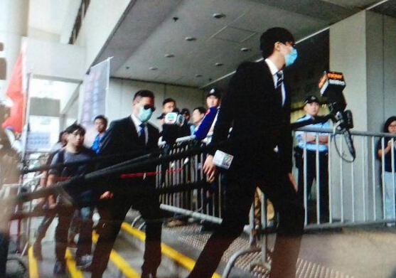 下午2时,涉暗角打人的7名警员,穿着整齐西装,部份人士戴墨镜及口罩遮住容貌,由正门步入法院。案件定於2时30分提堂审理。
