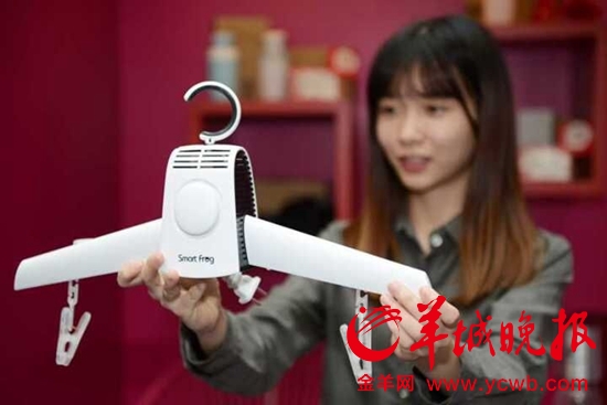 旅游神器——折疊式快干衣架也在展會上亮相。據設計師介紹,該款衣架功能強大,單薄衣物3小時健康烘干,冷熱風一鍵轉換,可折疊設計輕巧便攜,還有防過熱溫控系統,實用程度簡直逆天。而它的定價并不高,百元左右即可買到。