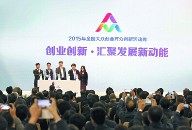 10月19日,在中關村展示中心,創業者代表一同在線點贊,拉開2015年全國大眾創業萬眾創新活動周的序幕。