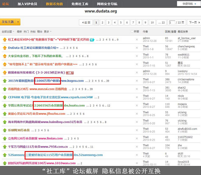 “大數據時代之下,個人隱私早已無所遁形”,這句話已經被重復過無數次。“社工庫”正是大量聚集用戶隱私的地方。“社工”者,社會工程學也,實質是黑客技術之外綜合利用情報學、心理學甚至騙術等知識的總稱而已。無數的“社工庫”里充滿著海量的用戶注冊郵箱、登錄ID、QQ號、常用密碼、銀行賬號、真實姓名、手機號碼等個人敏感信息。