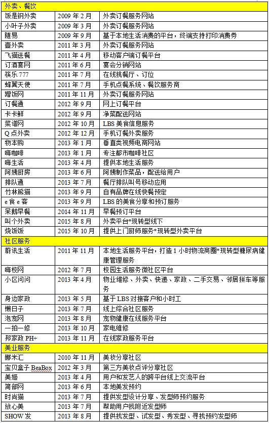 附:O2O創業項目死亡名單(騰訊科技根據“華東O2O項目死亡名單”等資料整理而成)