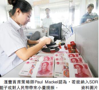 匯豐首席策略師Paul Mackel在報告中指出,中國近來采取的一系列改革措施正支持人民幣爭取納入IMF的SDR籃子,其他措施則為人民幣長期在全球扮演更重要角色奠立基礎,人民幣納入IMF的SDR籃子的適當條件已萬事俱備。他認為,若能納入SDR籃子或對人民幣帶來小量提振,有助對人民幣的信心。他說,人民幣納入SDR可能是中性到正面的;但若是相反,則可能造成相當負面影響。