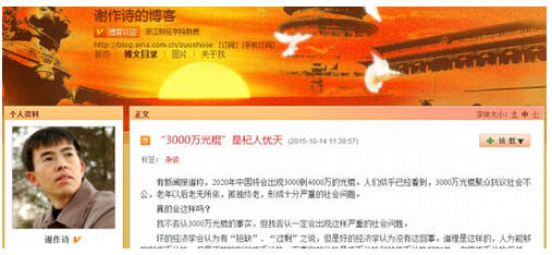 謝作詩的文章說,對此,人們似乎已經看到將引發嚴重的社會問題,“我不否認‘3000萬光棍’的事實,但否認一定會出現嚴重的社會問題。”