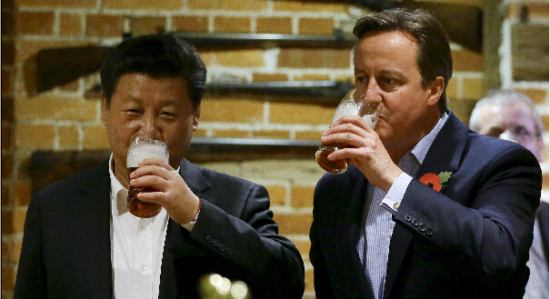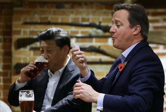 当晚,卡梅伦在他的社交媒体上,上传了一张他和习近平在一家英国传统酒吧中的合照,并写道: “我去卡兹登(Cadsden)的The Plough酒吧坐了坐,和中国的习主席一起喝了杯印度淡色艾尔啤酒(IPA),吃了些鱼和薯条。”