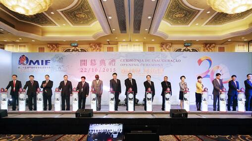10月22日上午,第20屆澳門國際貿易投資展覽會(MIF)在澳門開幕,澳門特別行政區行政長官崔世安,中央人民政府駐澳門特別行政區聯絡辦公室主任李剛,外交部駐澳門特別行政區特派員公署副特派員潘雲東,國家民族事務委員會副主任羅黎明,北京市人民政府副市長程紅,江蘇省人民政府副省長張雷,陝西省人民政府副省長王莉霞,澳門特別行政區經濟財政司司長梁維特,葡萄牙經貿投資促進局主席佛拉斯基,以及葡語系國家政府代表幾內亞比紹共和國經濟、計劃和地區一體化部國務秘書門德斯,東帝汶商務、工業和環境部副部長費雷拉等出席并啟動開幕儀式。