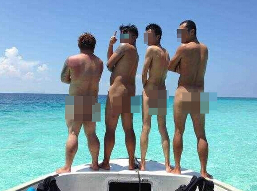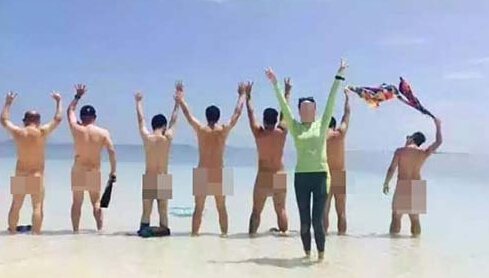 近日在网上疯传的疑似外国游客在仙本那军舰岛群裸的照片