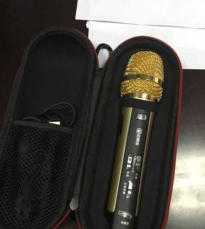 李女士驾车K歌时使用的金色麦克风