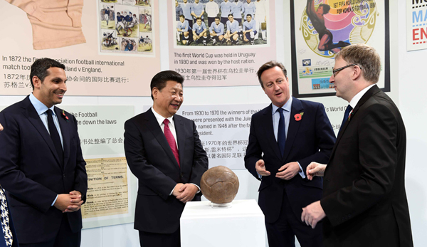當日一早,在英國首相卡梅倫陪同下,習主席參觀曼徹斯特城市足球學院。由此,習近平的「足球外交」風采再度展示在世界面前。