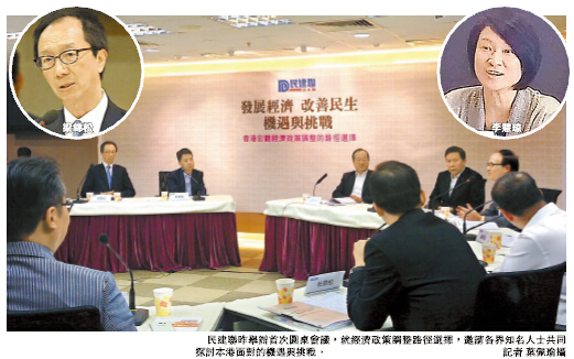 圓桌會上,民建聯主席李慧琼表示,香港正面臨外圍經濟壓力,過往經濟增長的動力開始減弱。在內外因素綜合影響下,經濟面臨較大的周期性調整風險;市民、工商界還分別面對住房難置業難、租金成本高企等問題。同時,本港樓價持續高企,泡沫風險極大。面對美國可能加息,樓市能否健康調整、避免因為「硬着陸」造成系統性風險,這也是本港必將面對的考驗。此外,還面臨人口老化、貧富分化等問題。