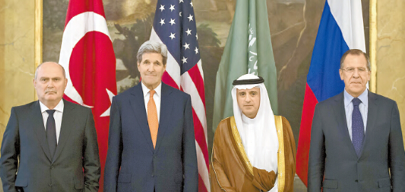 【香港商報綜合報道】當地時間23日,美國國務卿克里、俄羅斯外長拉夫羅夫、土耳其外長瑟納爾勒奧盧和沙特外交大臣朱拜爾在維也納舉行會晤,試圖重新激活已陷入困境的外交努力,尋找解決敘利亞危機的方案。美俄等四方就此進行了初步商討,達成了一些共識,但美俄的根本立場不同,會談中的分歧與對立明顯;此外,美方似乎有意在會談時「撇開」歐盟而與俄討論美方關心的話題,這很可能為今后國際社會參與解決敘危機增添變數。