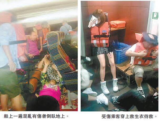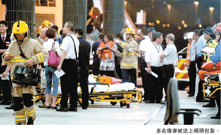 其子亦答腔指:「全船停電呀!」「停下來無晒動力!」他的左膝、下巴及嘴部受傷流血,「當時船員問有無人是醫生或護士,可協助急救?」幸相隔20分鐘后,警員與救護員已到達登船,對傷者展開拯救。