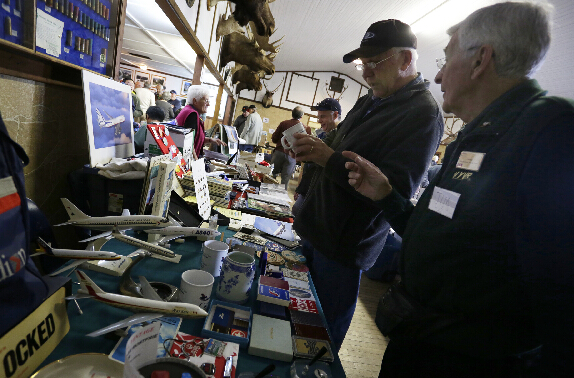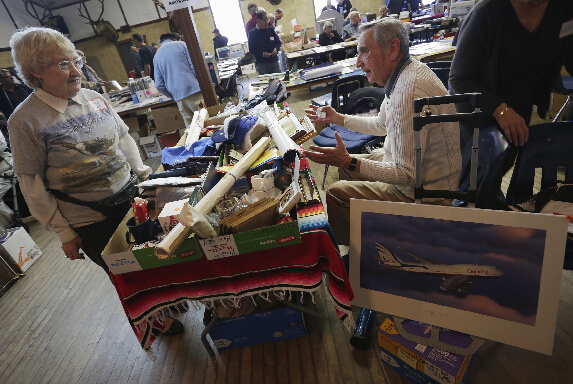 在加拿大溫哥華, 航空愛好者在航空收藏品展上交流收藏心得。