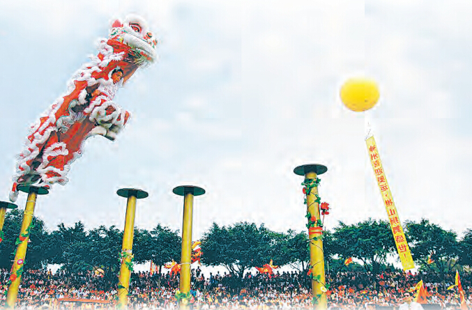 本土文化精神給力城市升值。「佛山功夫」在國內外影響深遠,是佛山獨有的文化品牌。在秋色歡樂節活動將推出黃飛鴻、葉問、李小龍的最新形象,展示踏水而舞(武)的武術文化,體現佛山人堅韌不拔、自強不息的民族精神。屆時,難得一見的飛鴻武術傘、武術特技將穿插點綴其中,10頭板凳獅及小獅頭歡樂起舞(武),壯觀的場面把現場氛圍推向高潮。