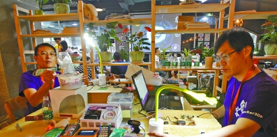在雙創周深圳分會場舉行的創客馬拉松活動中,創客正在制作自己的作品。記者 魯力 攝