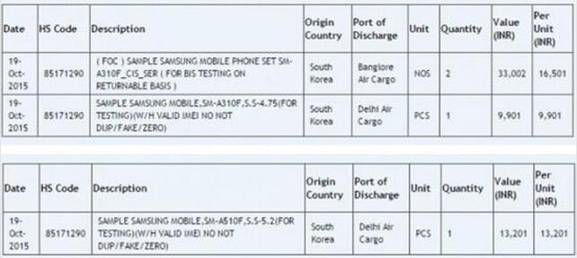 據外媒Phone Arena報道,印度進出口網站Zauba披露的信息顯示,繼Galaxy A3和Galaxy A5之后,三星該系列還會有新的產品亮相。