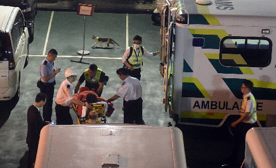 10月26日*晨一点,最后一批19名伤者由消防船送抵香港尖沙咀灭火轮码头,再转往医院。25日晚,一艘由澳门往香港的喷射船在大屿山西南的小鸦洲附近撞到不明物体。香港消防处表示,一共处理了148名乘客和船员,14人重伤,107人轻伤,伤者送往6家医院。喷射船撞击后失去动力,右边船尾机房位置有损坏和入水,但无实时下沉危险。