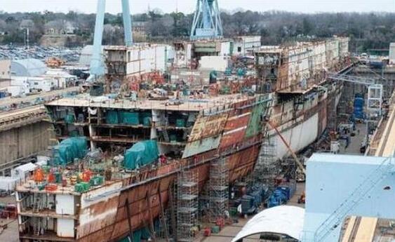 據內地傳媒報道,疑似是001A型國產航母與美國最新航母福特號一樣,均採用塔式建造法,即將較小的預制構件吊裝到船塢內連接成形,隨後層層向上疊加建造。按目前流出的照片可見,全新吊裝的大型預制件中間,留出了一個空位,同時分段艙壁結構也明顯強化,有分析指,這全新安裝的部份,正是航母機庫的一部份。