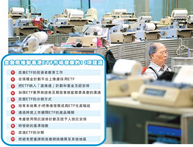 金發局主席史美倫表示,香港是區內的金融中心,擁有先進的金融基建,人才濟濟,條件優越,有利ETF市場蓬勃發展。內地與香港開展跨境合作,也為兩地ETF行業帶來龐大商機。然而,海外領先市場近年積極提升其ETF平臺,東京和上海因為成功引入更多新產品,已取代香港在亞洲區內的領導地位。金發局成員之一的謝清海認為,香港亟需擴闊ETF投資者的基礎,但苦於欠缺分銷渠道,認為應擴闊香港ETF的種類,例如可引入更多與商品及海外交易所相關的ETF。即使如此,他并不認同在港建立商品交易中心作為引入商品ETF的先決條件。