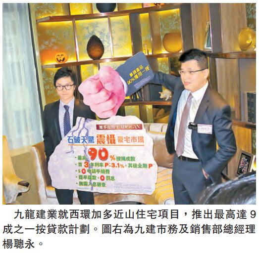 【香港商報網訊】記者曾展榮報道:本港樓市前景愈趨不明朗,阻嚇了準買家入市。為了吸引客源,不少發展商開始大打按揭戰,推出高成數按揭計劃,戰線更罕見地蔓延至豪宅!九龍建業(034)西環豪宅加多近山昨日加推23伙,發展商并趁勢推出最高90%的按揭計劃;九建市務及銷售部總經理楊聰永相信,不少市場參與者會被其按揭計劃「震懾」。
