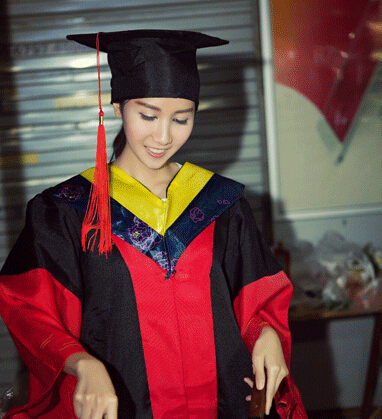 美女穿“博士服”炒饭的照片今天上午在微博流传。记者通过微博找到了照片女主角的微博账号“@珍珠女神48号”。