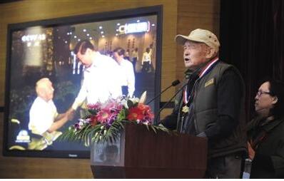 昨日,在中國遠征軍緬甸陣亡將士遺骸歸國活動新聞發布會上,遠征軍老戰士尤廣才現場回憶當年戰爭的情景。 新京報記者 浦峰 攝