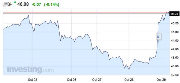 美國原油期貨收漲2.74美元,報每桶45.94美元,此前觸46.01美元的盤中高位。