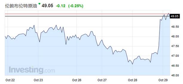 布蘭特原油期貨收漲2.24美元,報每桶49.05美元。