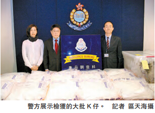 陈Sir称,今次是自2006年以来破获的最大宗「K仔」毒品案件。该贩毒集团属高层次集团,活跃已逾2个月,相信K仔专门供应给全港拆家,再分销到娱乐场所。现正追捕集团幕后主脑归案。