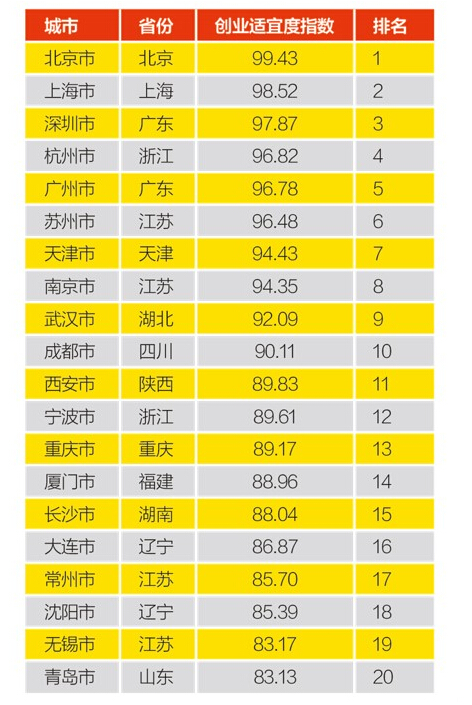 2015中國最佳創業城市榜發布 北京連續四年蟬聯榜首