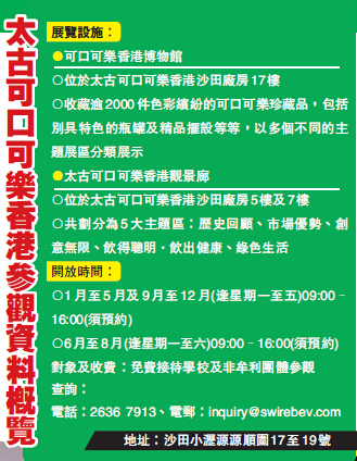 不經不覺,太古可口可樂香港沙田廠房自1991年成立至今,已接待超過250萬人次,年齡由5歲至65歲不等。為慶祝太古集團在港取得可口可樂裝瓶權50周年,可口可樂博物館自開幕以來首次進行大改造,並已於5月22日重新開幕。