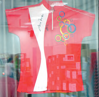 館內展出中國欄王劉翔親筆簽名的戰衣。