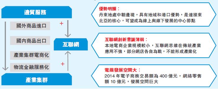 丹東國門灣中朝邊民互市貿易區是遼寧首家中朝邊民互市貿易區。「國門雲購」的「互聯網+互市貿易」新型模式是丹東互貿區的一個最大亮點。在中朝貿易的特殊背景下,打造一個開放的貿易平臺其意義不言而喻。國門灣中朝邊民互市貿易區采用的「互聯網+互市貿易」與以往的經營模式不同,在邊貿互市中既是創新嘗試,也是一個領跑者。丹東已經有正在使用和在建的跨境電子商務平臺5個;丹東外貿公共服務平臺已錄入企業636戶;設備時代網電商平臺已錄入企業近100戶;「國門雲購」跨境電子商務平臺再一次追加了這一建設力度。「互聯網+實體商舖」的O2O「國門雲購」運營體系就是以國門灣互貿區為基地中心,建設跨境電子商務產業基地及跨境物流倉儲中心,并配套6大服務體系(互市貿易服務、倉儲物流服務、電商培訓孵化服務、幫扶創業服務、綜合配套服務)。「國門雲購」綜合電商平臺實現線上全網營銷,通過以專業實體商舖為實體,全方位的資源整合,將互市產品在線下實體商舖展示體驗。中國高科技產業化研究會副理事長劉延寧認為「互聯網+互市貿易」將會帶來互市貿易的巨大變革,這個變革將會使互市貿易以互貿區為基地,打破地域、區域、國界的限制,通過互聯網實現線上線下的互動,實現貿易的自由化、全球化。遼寧省政府的一位官員對我們介紹說,丹東互貿區創新使用了政府主導、市場化運作、海關監管的運營模式。是遼寧主動參與和融入「一帶一路」國家戰略的一個重要步驟。對於「互聯網+互市貿易」的模式,遼寧省將大力支持,對丹東互貿區給予包括資金支持在內的各項政策支持。支持互貿區通過中朝、中韓互市貿易的線上線下結合,以丹東為核心打造東北亞跨境貿易電子商務、物流區域核心和「互市貿易港」。丹東一位作水產生意的女士也對我們說,隨著新鴨綠江大橋的建成和「互聯網+互市貿易」招商引資平臺的建立,將來前往丹東尋求商機的中國投資者將越來越多,邊貿將進一步升溫。同時,她也為可能會有更多的競爭者而擔憂。