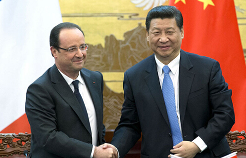 国家主席习近平11月2日在人民大会堂同法国总统奥朗德举行会谈。两国元首高度评价中法关系发展,同意继续合力前行,不断开创两国友好合作新局面。
