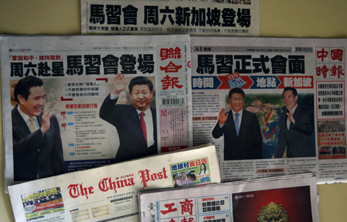 台湾及海外媒体昨日纷纷刊发头版头条消息,报道将要在狮城登台的“习马会”。中新社