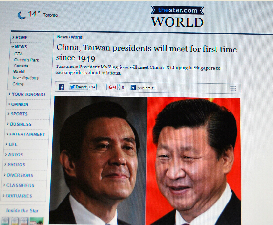加拿大多伦多星报当地时间3日在网上大幅报道“习马会”消息。台湾“中央社”