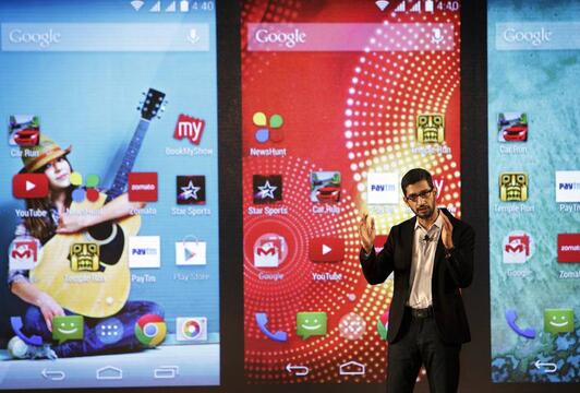 對于想要在快速增長的新興市場獲得更多用戶的谷歌而言,印度市場至關重要。谷歌CEO桑達爾·皮查伊(Sundar Pichai)最近表示,自2014年5月以來Android平臺吸引了大約4億的新用戶,增長主要來自發展中國家。在印度,智能手機用戶在逾9億的手機用戶中的占比只有10%左右。