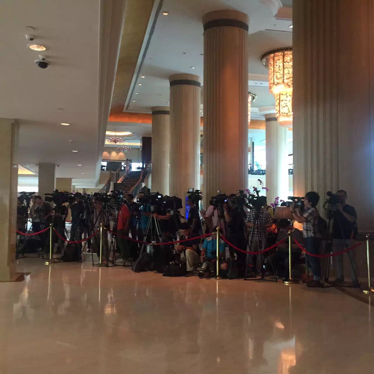记者轉到“习马会”地点香格里拉酒店,一進門嚇了一大跳,幾十支長搶短炮對著大門口,立即有種上戰場的感覺。原來是臺灣陸委會主任夏立言要到。一見陣勢不對,聽說在酒店協助下,夏立委一行轉走偏門,結果大家都拍唔成,皆大歡喜,笑言可以松口氣,嘆個下午茶。