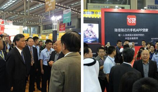 早上8點50分,深圳市市委書記馬興瑞、市長許勤蒞臨飛貸金融展位。馬書記與許市長對互聯網借貸的“快速度、多自由、低負擔”創新表示贊許,特別是對飛貸金融的“五分鐘改變世界”表現出濃厚的興趣。就在飛貸總裁曾旭暉先生向市領導介紹飛貸產品時,許勤市長率先表示:“我在我們家的電梯里看到過你們的廣告,確實是一款創新的產品。”引得現場圍觀群眾發出陣陣笑聲。