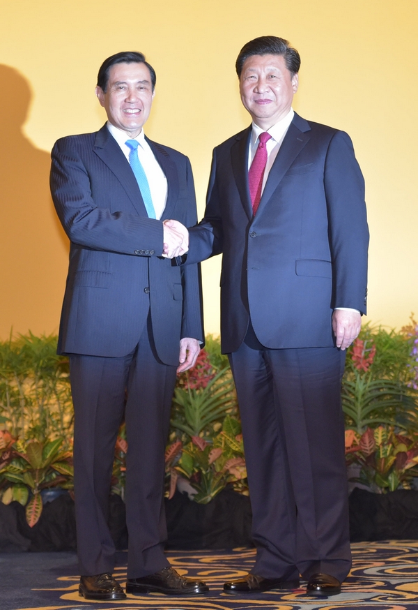 今天,我與習近平先生分別以臺灣與大陸領導人的身分,穿越66年的時空,伸手相握,握著兩岸的過去與未來,也握著中華民族振興的希望,深具歷史意義。